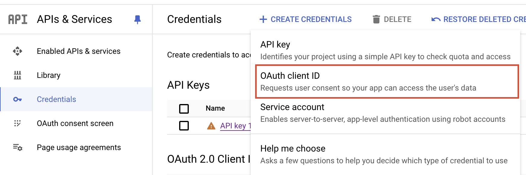 - After generating the JSON file, you’ll need to create the OAuth Client ID authentication