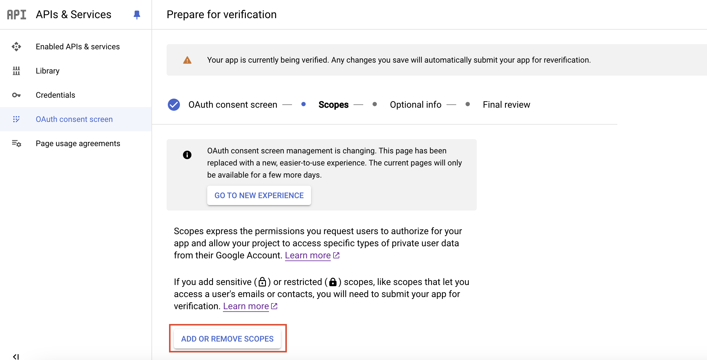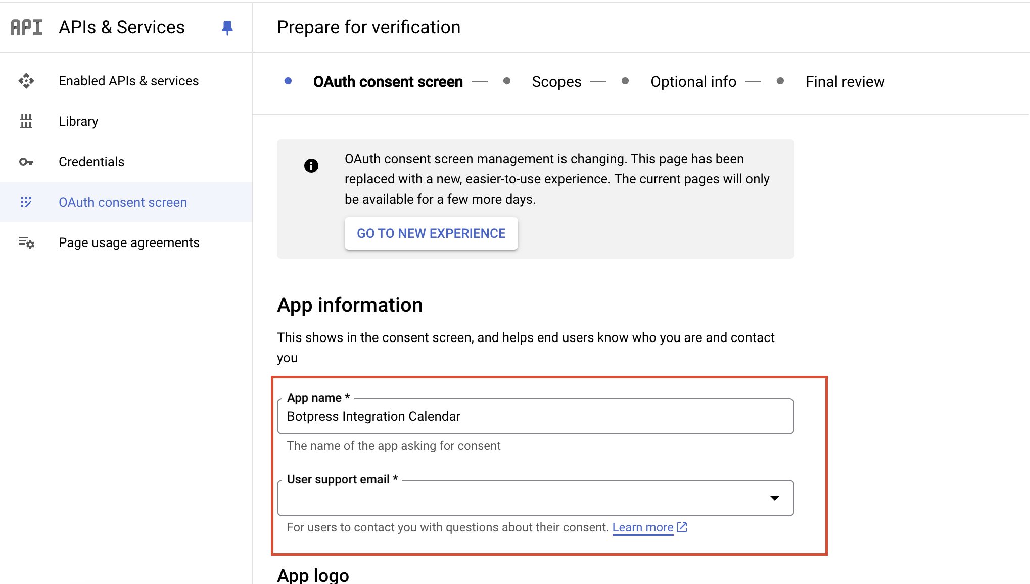 - After creating the OAuth, you’ll need to create the OAuth consent screen