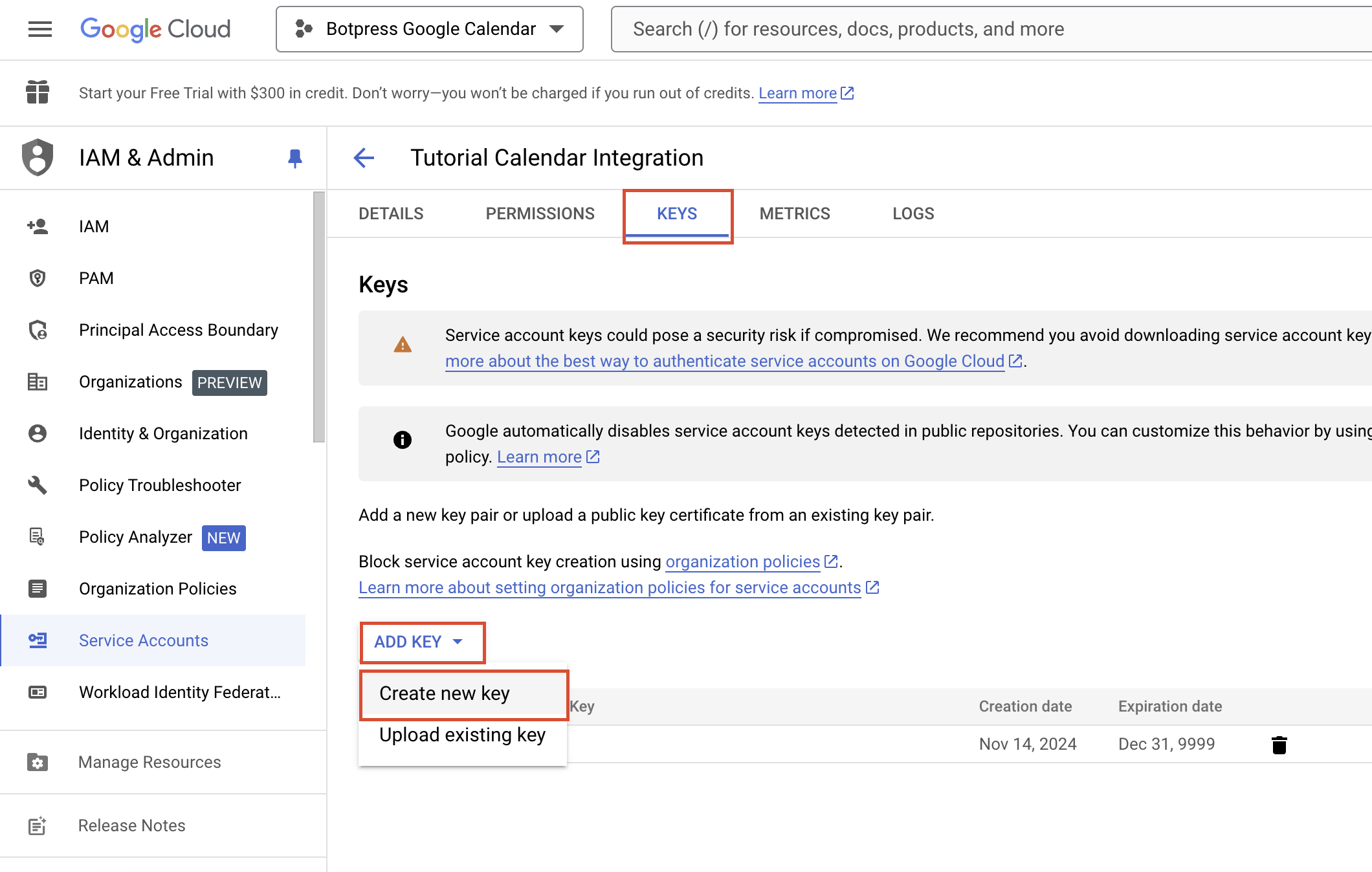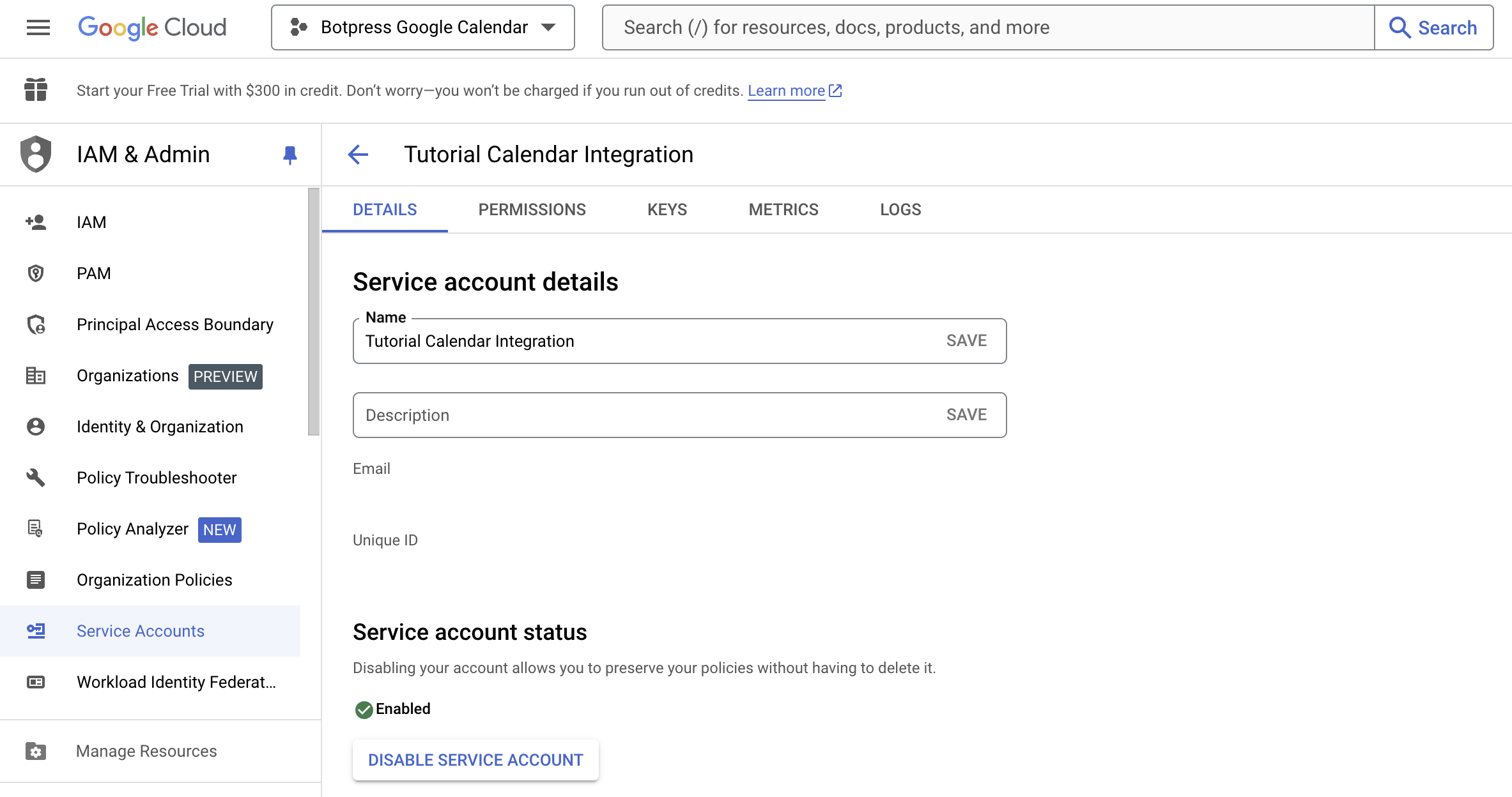 - The other fields are optional and don’t need to be filled in, so after defining the Service Account Name, just click on Done