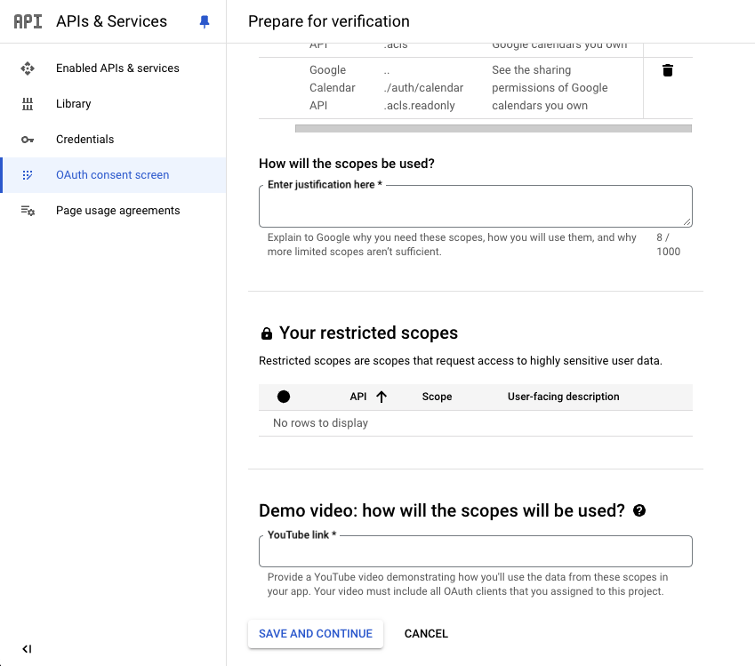 - Then you’ll need to provide some justifications for why you’re using the scopes. Just explain that the bot needs the scopes to create, delete, update, and read