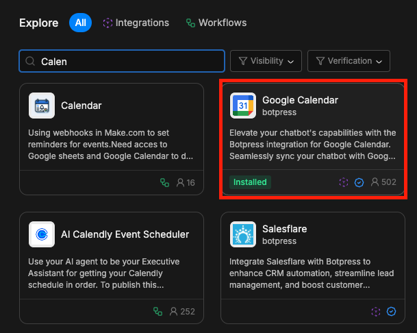 - In your Botpress Studio, in the upper corner, you should install the integration