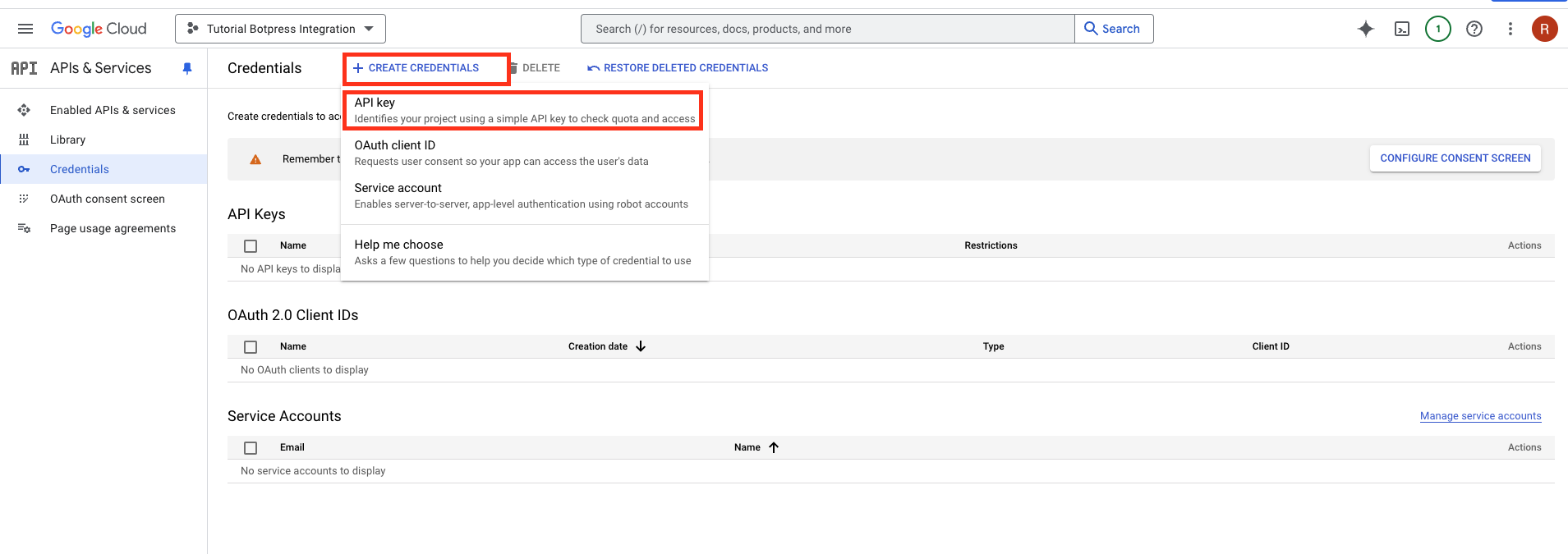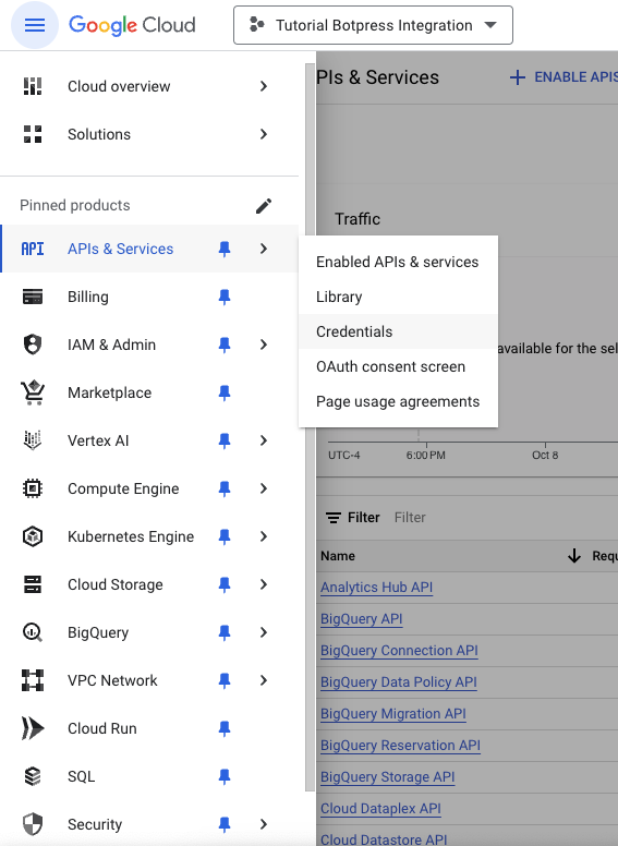 - To make sure you are in the correct project, check the project name next to the Google logo